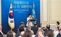 ¹Ú ´ëÅë·É, ±¤º¹71Áֳ⠱â³ä, µ¶¸³À¯°øÀÚ À¯Á· ÃÊû ¿ÀÂù ÀÌÀçÇÐ ±âÀÚ/ ¹Ú±ÙÇý ´ëÅë·ÉÀº 8¿ù12ÀÏ ¿ø·Î ¾Ö±¹Áö»ç¿Í µ¶¸³À¯°øÀÚ À¯Á· µî 163¸íÀ» û¿Í´ë·Î...